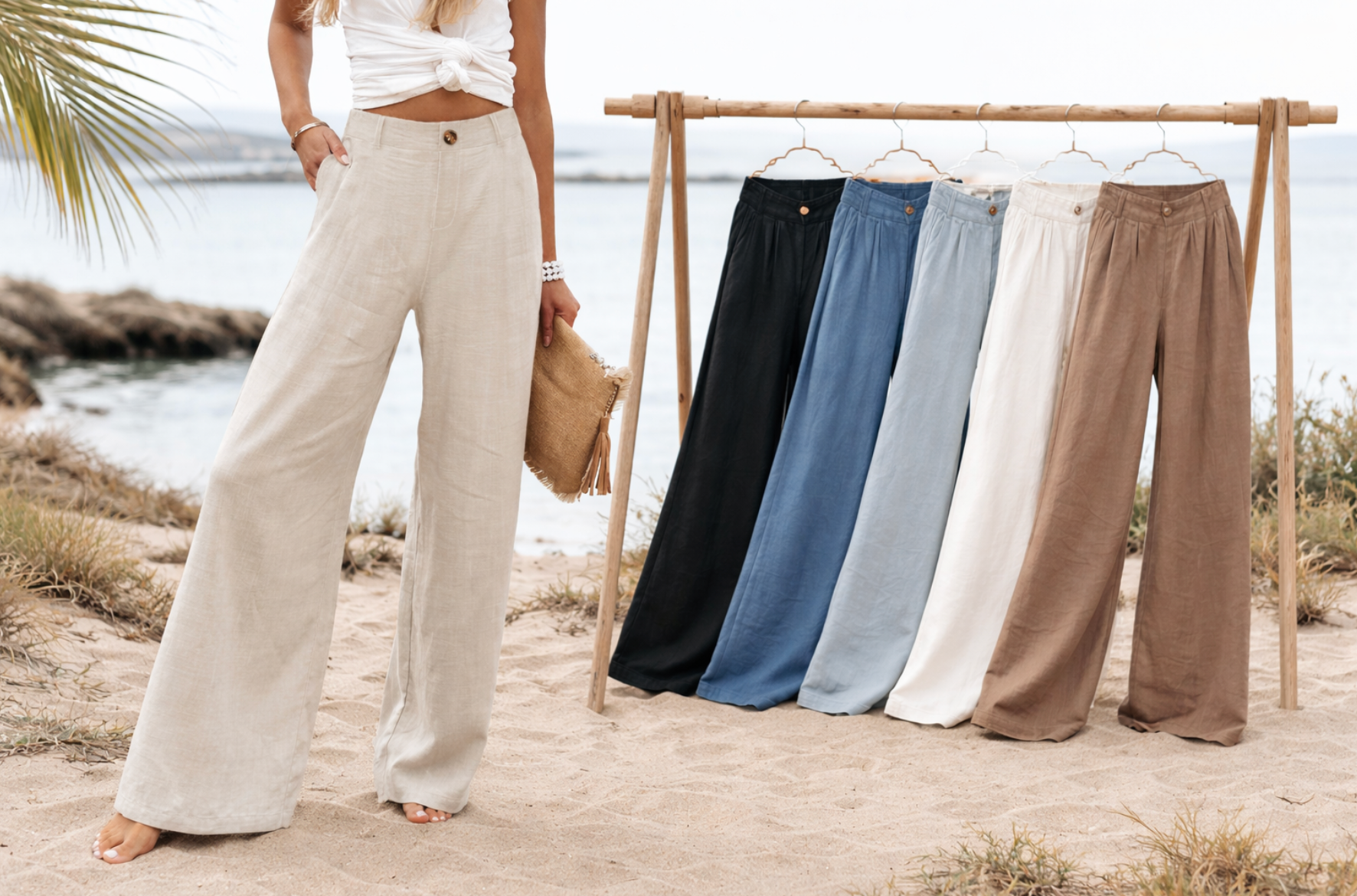 Designed for comfort and effortless style, these wide-leg pants offer a flattering fit with a lightweight, breathable feel.